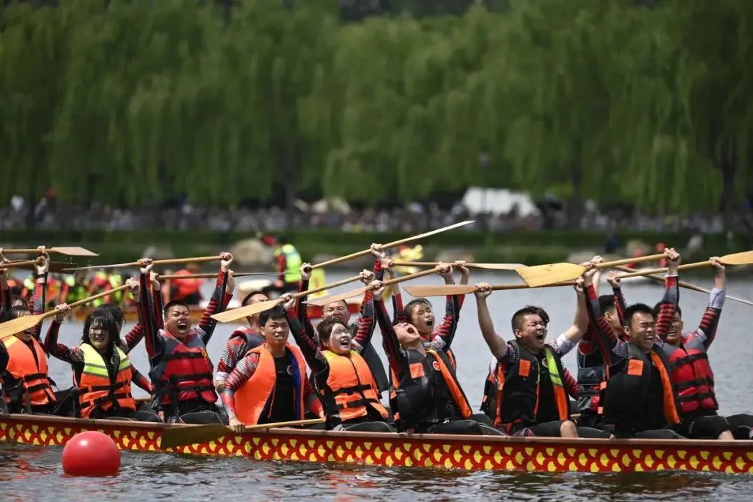 “预赛第一很自豪,为这场龙舟赛特训一个多月,每天无论刮风下雨都坚持训练。” 在男子500米12人直道竞速赛预赛中,长春科技学院龙舟队一骑绝尘,获得冠军。领队龚泽表示:“接下来我们会在决赛中全力以赴,争取好成绩。”