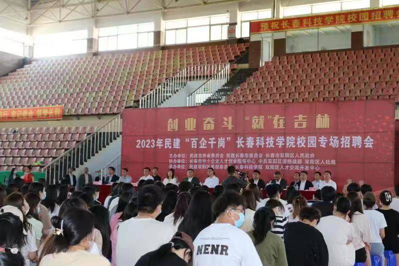 6月6日下午,“创业奋斗‘就’在吉林”2023年民建“百企千岗”暨长春科技学院校园专场招聘会在长春科技学院体育馆举办。