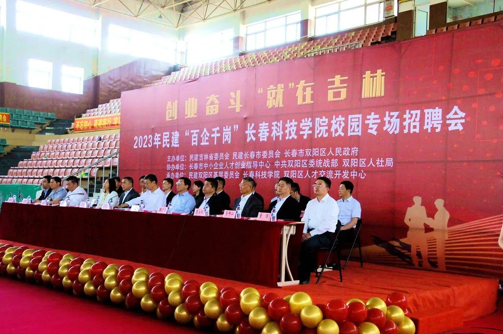 为认真贯彻落实中共二十大精神,全面落实“创业奋斗‘就’在吉林”全省大学生创业就业座谈会上的讲话精神,按照中共吉林省委统战部“吉善同心工程”和长春市委统战部“同心发展行动”相关要求,6月6日,由民建吉林省委员会、民建长春市委员会、双阳区人民政府共同主办的“创业奋斗 ‘就’在吉林”——2023年民建“百企千岗”长春科技学院校园专场招聘活会在双阳举行。