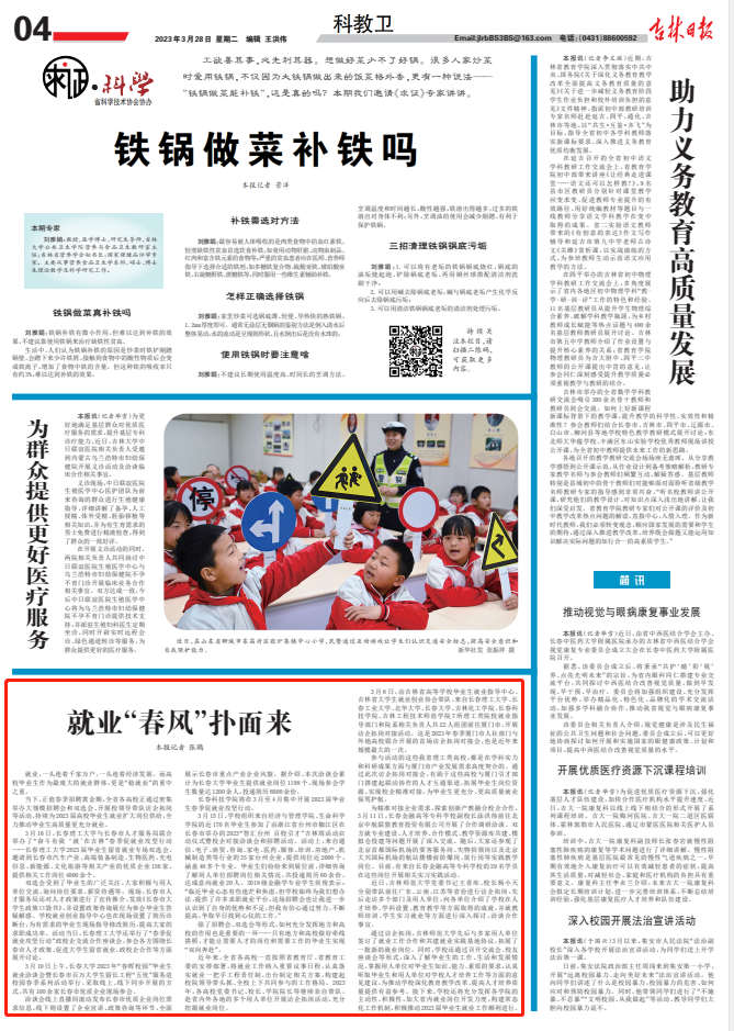 3月16日,长春理工大学与长春市人才服务局联合举办了“奋斗有我 ‘就’在吉林”春季促就业攻坚行动——长春理工大学2023届毕业生留省就业专场双选会,邀请到长春市汽车产业、高端装备制造、生物医药、光电信息、新能源、文化旅游等相关产业的优质企业156家,提供相关工作岗位4000余个。