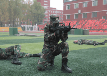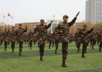 随后,学子们进行了军体拳表演。他们喊声震天,动作一气呵成,刚劲有力,尽显勇猛。匍匐前进、翻越障碍、解救人质……军训教官战术表演燃爆全场,令人精神振奋。