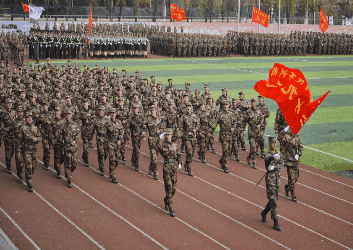 在庄严嘹亮的国歌声中,军训汇报正式拉开帷幕。随着学生处国防教育科科长曾健的一声令下,分列式开始。伴随着铿锵有力的乐曲,身着绿色迷彩服的方阵,以高昂的士气、严整的军容、挺拔的军姿、嘹亮的口号、整齐的步伐依次经过主席台,挥洒的汗水见证成长与青春。