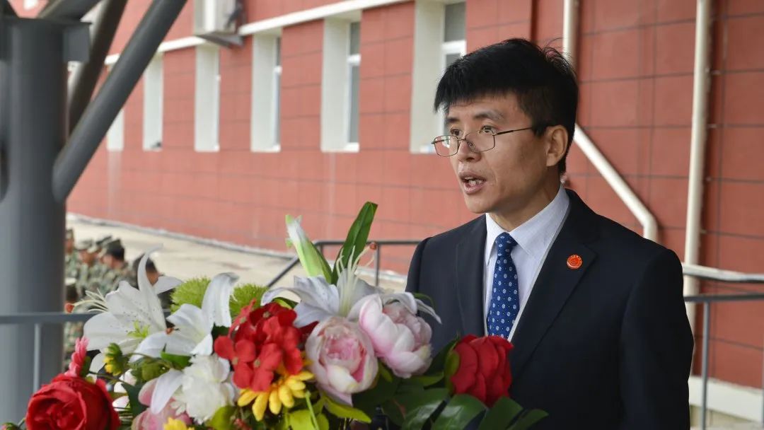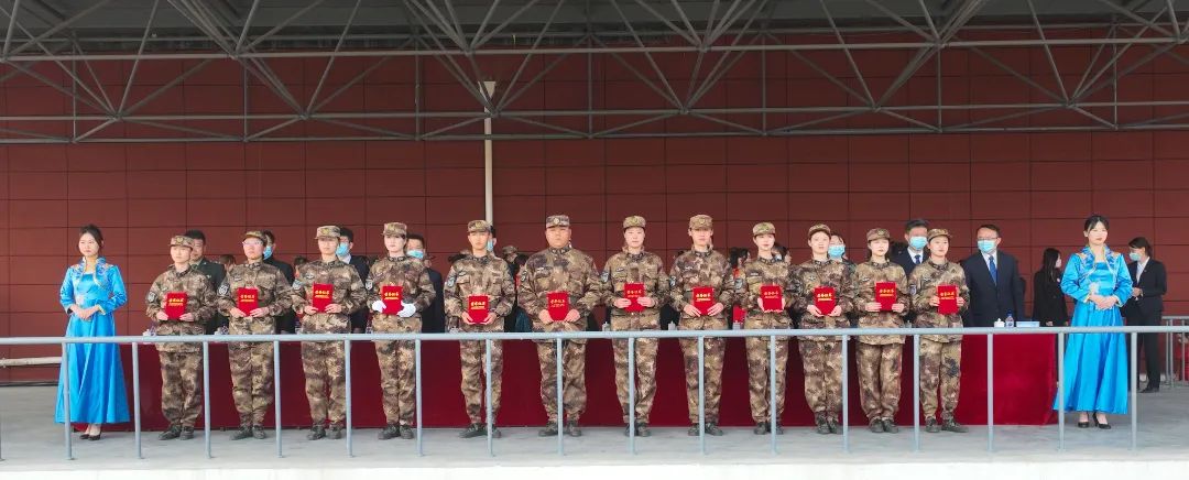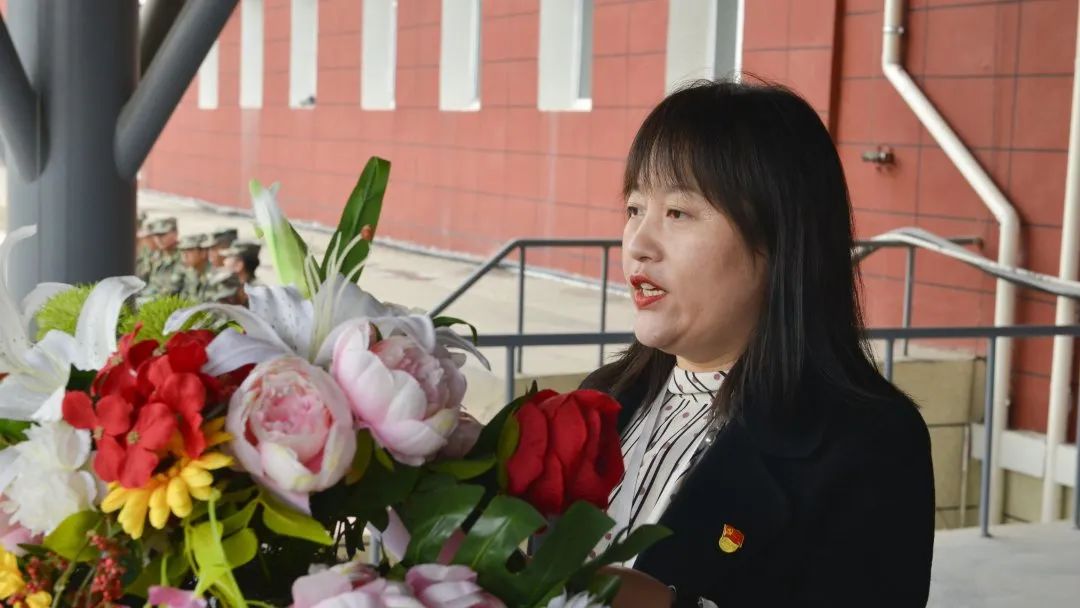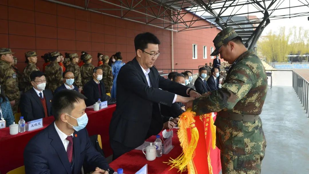表演结束后,党委书记林佳彬向长春科技学院预备役教官赠送锦旗,向全体承训教官表示诚挚谢意。