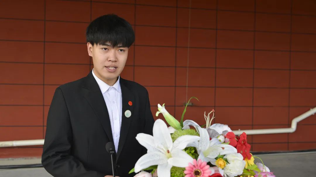 在校生代表智能制造学院20级大数据1班马宏志希望全体新生辛勤耕耘,挥洒汗水,传承发扬"崇德至善,笃学强能"的校训精神,勇挑时代重担,以实际行动践行党的二十大精神。