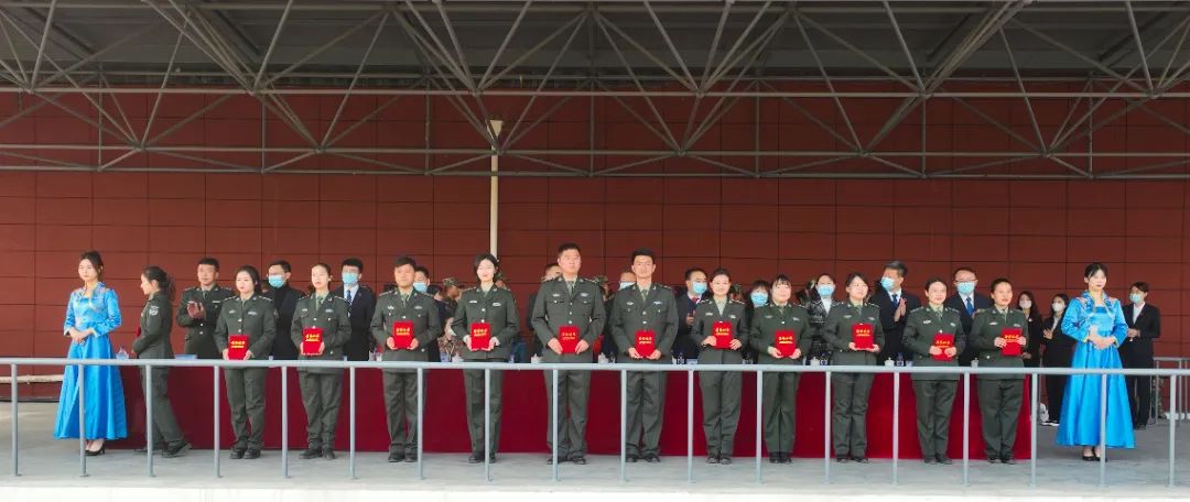 随后,主席台就坐领导为预备役大学生授衔;为获得军训团优秀连队、优秀指导员、优秀军训教官、优秀预备役教官、国旗护卫队优秀旗手、军训团优秀训练标兵、优秀内务标兵颁发了奖牌、荣誉证书。