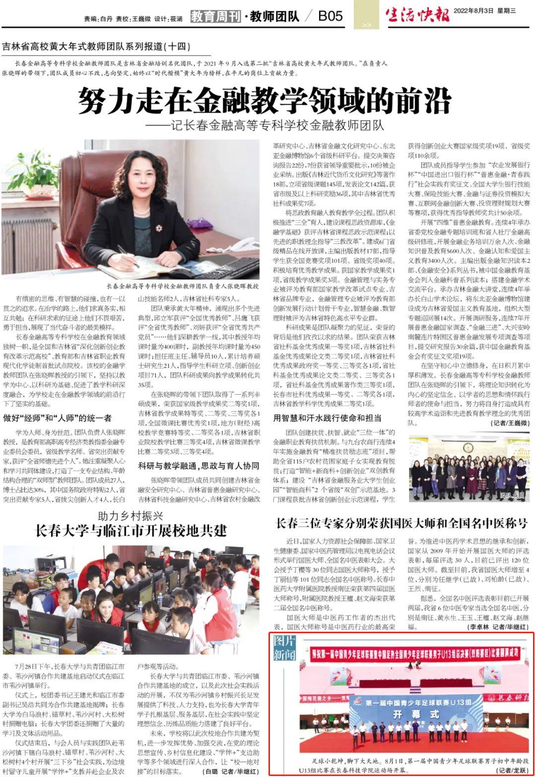 第一届中国青少年足球联赛男子(初中年龄段U13组)在长春科技学院运动场开幕