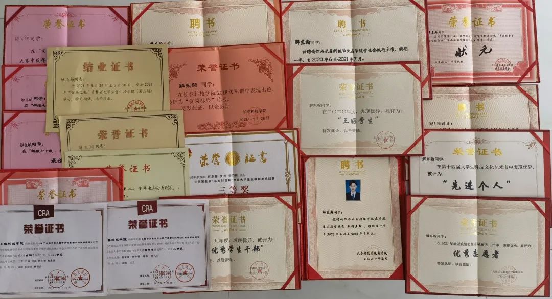 曾获“三好学生”、“优秀学生干部”、“优秀志愿者”等荣誉称号,多次获得校级奖学金,参加国家级、省级专业学科竞赛均取得优异成绩,累计获得“国家级三等奖”1次、“省级二等奖”3次、“三等奖”1次。