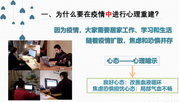 “封闭期间可能导致同学们生活节奏紊乱,出现焦虑、抑郁、暴躁等情绪,处理不当会引起群众恐慌……”3月19日,服务队全体成员收看长春中医药大学的门瑞雪教授所作心理讲座——《疫情中的心理重建》,提高服务针对性。