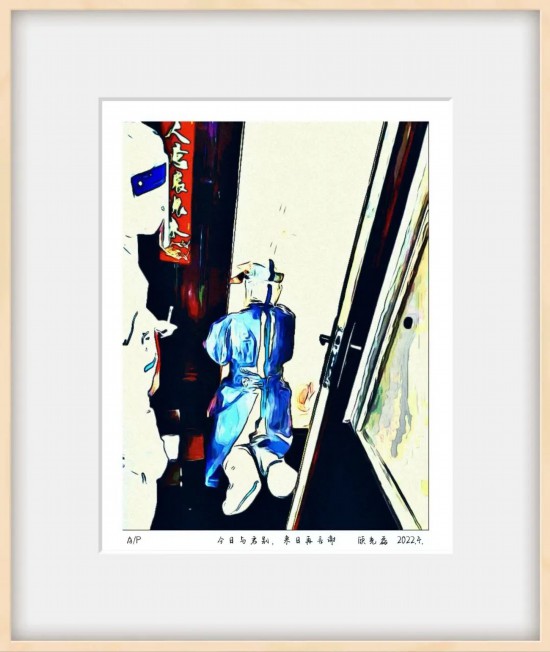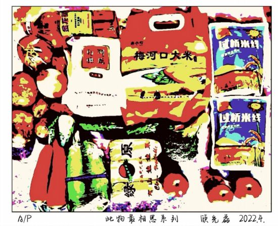 一粥一饭,思来不易:一蔬一菜。在疫情防控进程中,顾光磊亲历了社区发放“蔬菜包”的点点滴滴,创作了《此物最相思》数码版画,感谢守护好群众 “菜篮子”暖心之举。