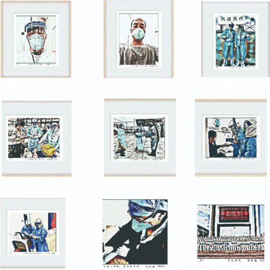 版画以奋战在一线的医护工作人员为主要元素,既有单人肖像,又有群体工作场景,艺术展现了援长队员在长春“疫”线“战斗”最美身影,再现了各路医疗队员并肩作战、共抗病魔难忘瞬间。