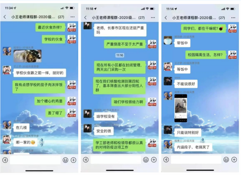 二是学工干部做好贴心服务。定期走访寝室,一对一对隔离学生及时进行心理疏导,送去关心关怀。通过微信朋友圈发文的方式书写校园防疫最新进展及学生在校情况,抚慰学生与家长,用爱与付出为学生保驾护航。