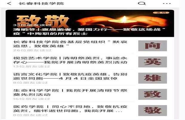 长春科技学院大力开展爱国主义教育,生动传播爱国主义精神,通过聆听“云”授课,讲述“抗疫”故事,线上开展爱国教育宣传活动。