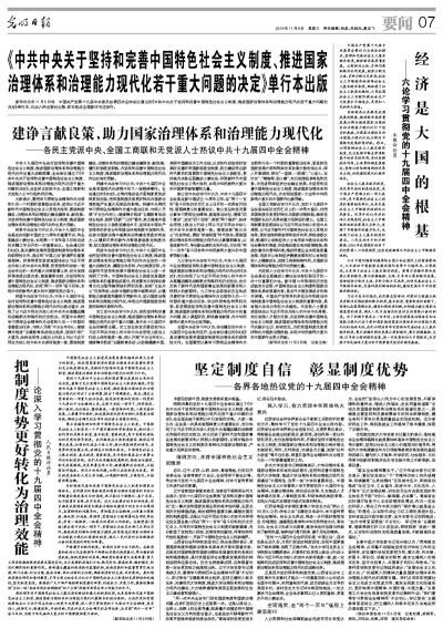 “党的十九届四中全会研究的是‘中国之治’,追求的是长治久安,为我们党坚定制度自信,实现中国梦提供了根本保障,指明了正确方向。”东北大学马克思主义学院院长田鹏颖表示,只要我们在思想上政治上行动上同以习近平同志为核心的党中央保持高度一致,就一定能顺利完成坚持和完善中国特色社会主义制度、推进国家治理体系和治理能力现代化的战略任务。