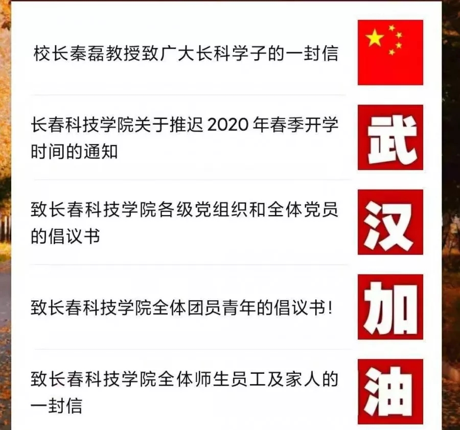 长春科技学院这座坐落在双阳的高校,正在用从未有过的“姿态“展示它的坚守,在全民战“疫”中,彰显疫情在哪里,战场就在哪里;疫情在哪里,长科的爱就在哪里!