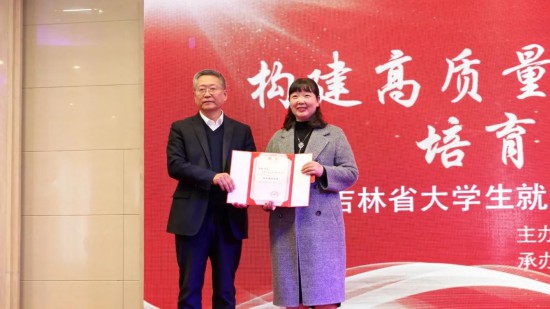第三届吉林省大学生就业创业研究会会长、长春科技学院校长栾立明颁发聘书