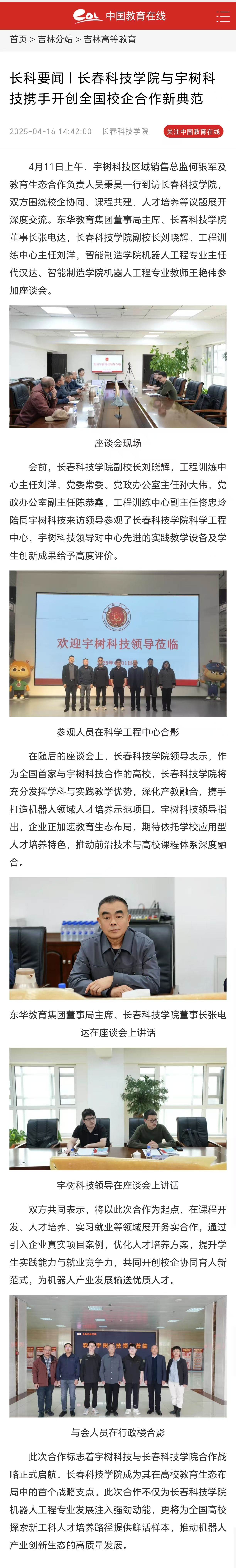 长春科技学院与宇树科技携手开创全国校企合作新典范