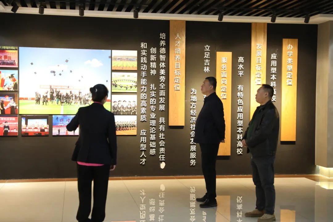 仪式前,继续教育学院院长李宗财和职业技术学院张蕾老师陪同吉林省红十字会的领导们参观了我校校史馆,深入了解我校的发展历程。