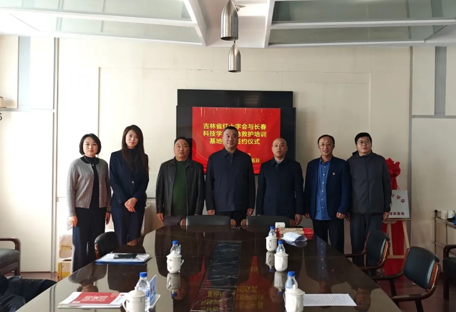 双方共同签约长春科技学院红十字培训基地管理协议,并向我校赠送4套心肺复苏教具。