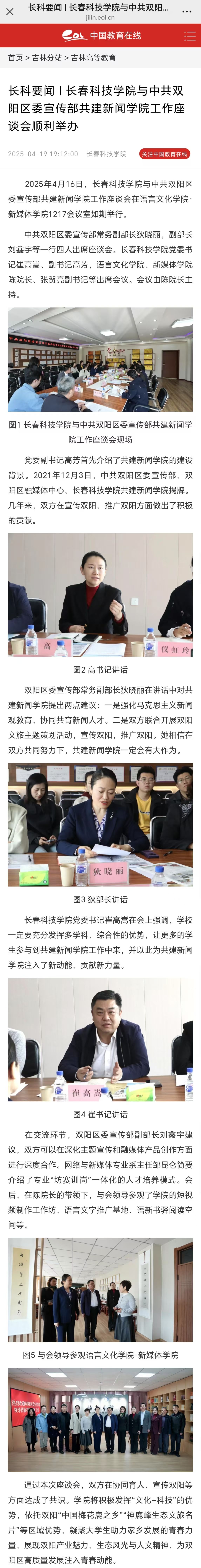 长春科技学院与中共双阳区委宣传部共建新闻学院工作座谈会顺利举办