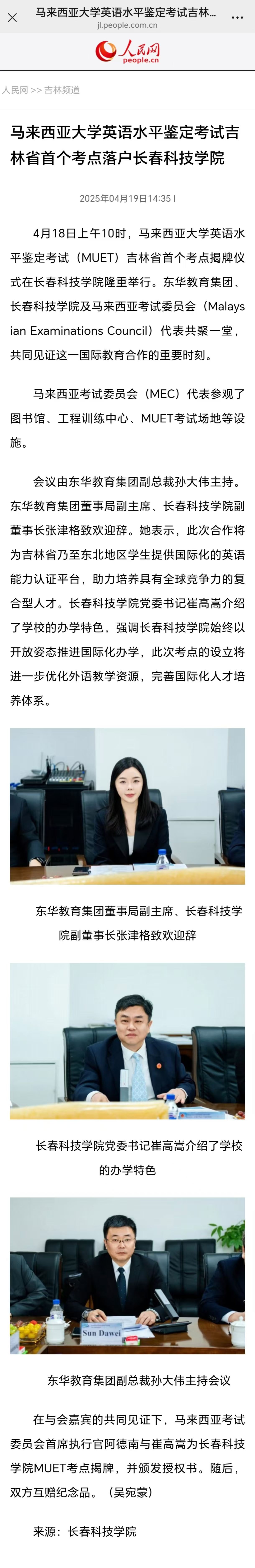 马来西亚大学英语水平鉴定考试吉林省首个考点落户长春科技学院