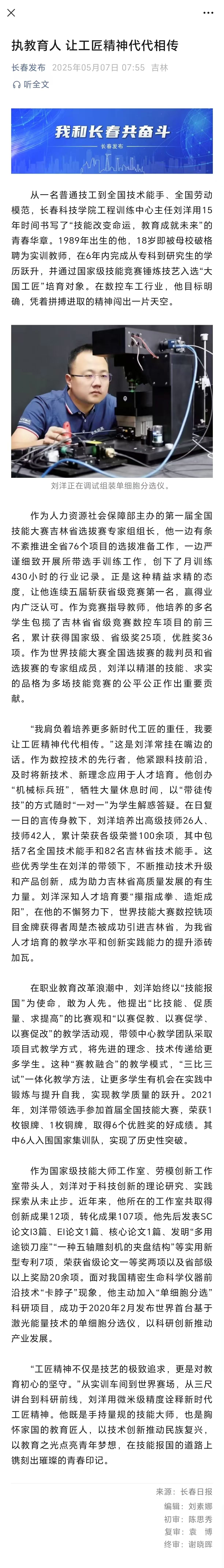 【劳模风采 闪耀长春】刘洋:匠心筑梦践初心 技能报国展担当