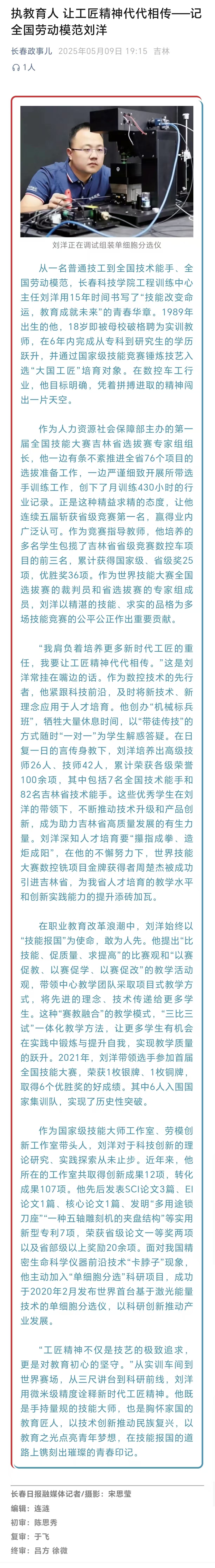 执教育人 让工匠精神代代相传——记全国劳动模范刘洋