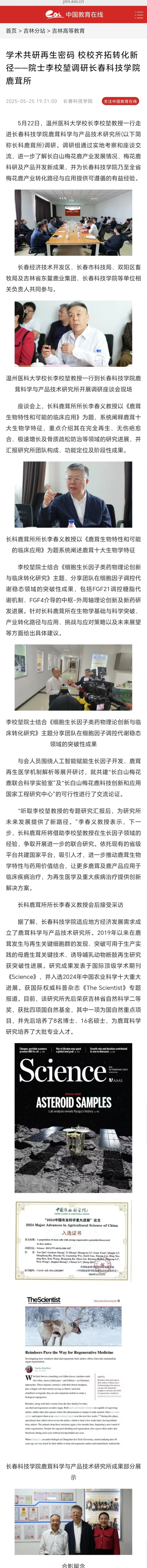 学术共研再生密码 校校齐拓转化新径——院士李校堃调研长春科技学院鹿茸所