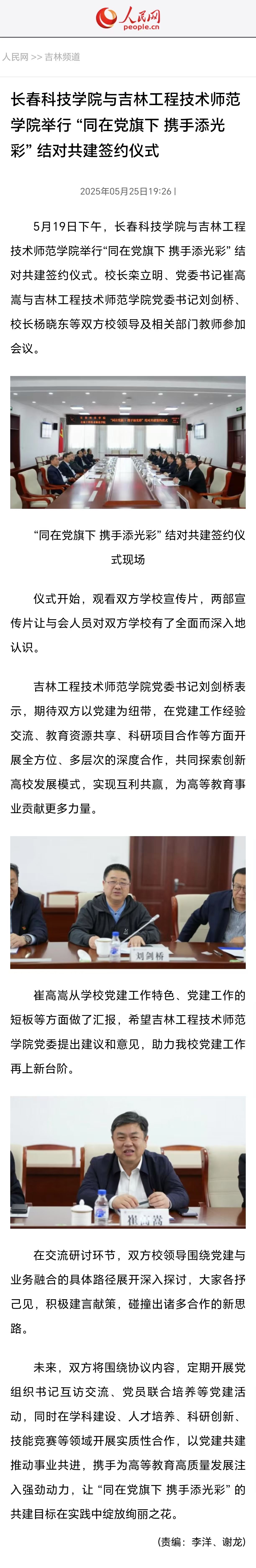 长春科技学院与吉林工程技术师范学院举行 “同在党旗下 携手添光彩” 结对共建签约仪式