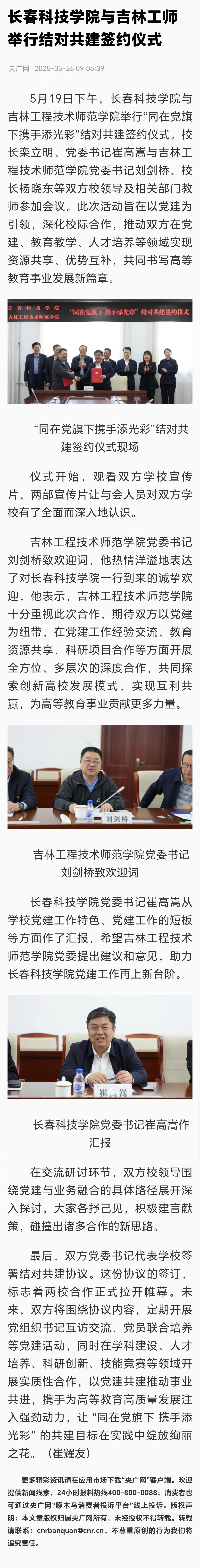 长春科技学院与吉林工程技术师范学院举行 “同在党旗下 携手添光彩” 结对共建签约仪式