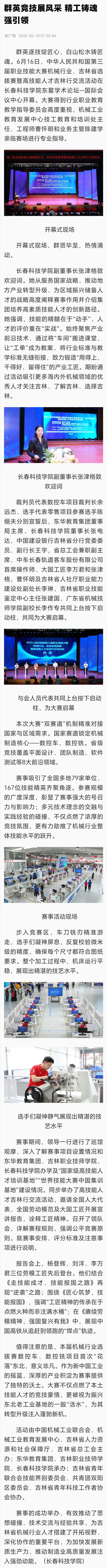 群英竞技展风采 精工铸魂强引领—中华人民共和国第三届职业技能大赛机械行业吉林省选拔赛暨高技能人才吉林行交流活动在长春科技学院开幕