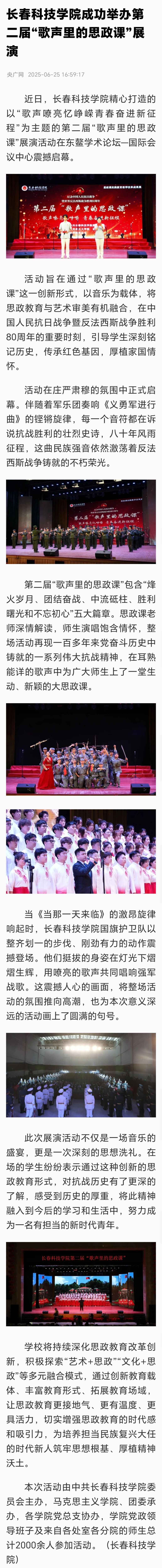 长春科技学院举办第二届“歌声里的思政课”展演活动