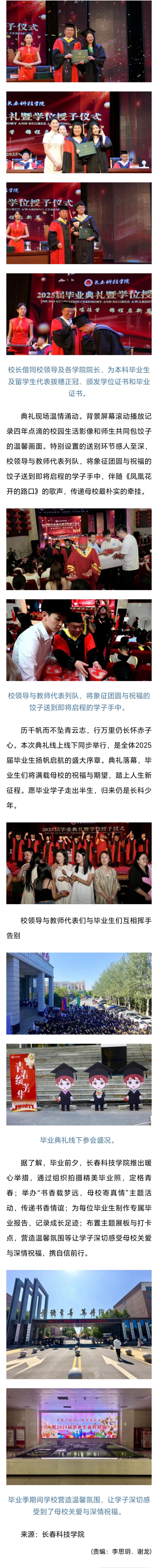 饺子送骄子 暖胃更暖心 长春科技学院2025届毕业典礼暨学位授予仪式举行