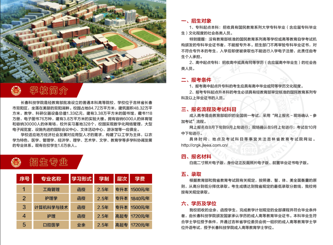 2023年,学校成人教育成功获批5个专业。其中专升本三个专业。高起专两个专业。截止目前,报考我校考生共计818人,在全省同类院校中成绩斐然。