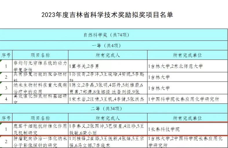 7.《鹿茸干细胞抗纤维化作用及机制研究》项目荣获吉林省自然科学二等奖