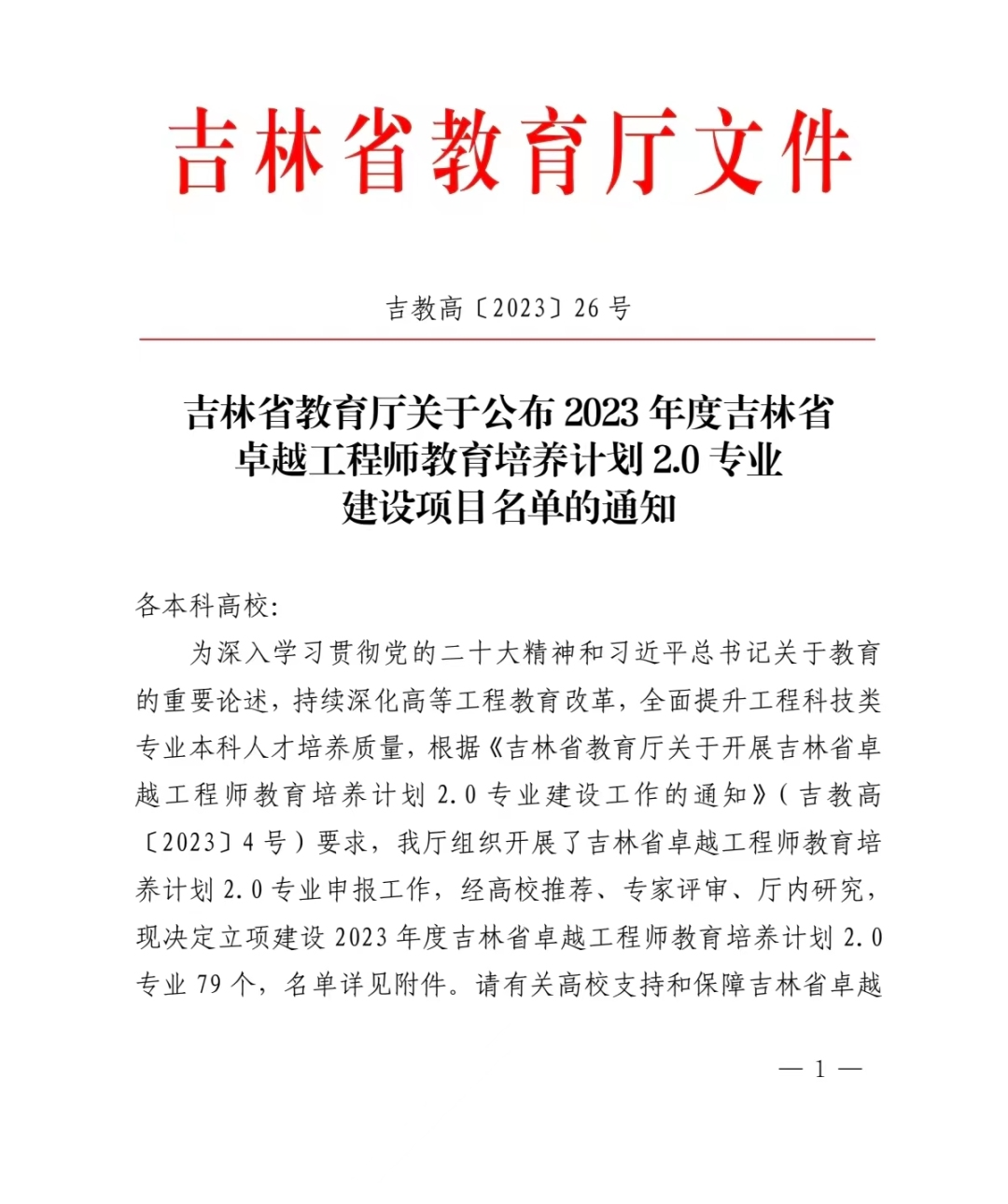 6.学校获批吉林省卓越工程师教育培养计划2.0专业