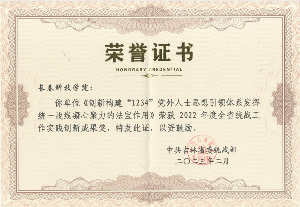 1.学校获得“吉林省统战工作实践创新成果奖”