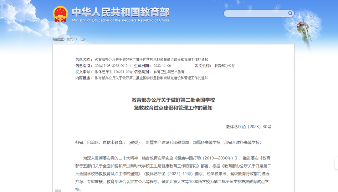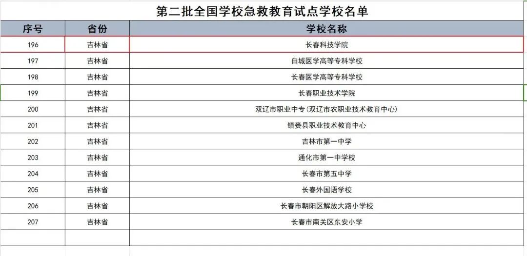 教育部发布《关于第二批全国学校急救教育试点学校认定结果通知》文件,长春科技学院榜上有名。学校与吉林省红十字会进行资源共享,建有“安全教育体验中心”和“红十字会应急急救护培训基地”。同时还建立了食品卫生、疾病预防、禁毒防艾等常见事故应急体验室。