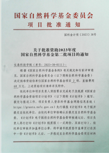 长春科技学院张国坤、郭倩倩两位老师申报的《SFRP调控鹿茸PRRX1+间充质干细胞分化为芽基细胞的机制研究》和《钙网蛋白(CALR)参与调控内质网应激支撑鹿茸快速再生的机制研究》获批国家青年科学基金项目,立项经费60万元。项目获批实现了吉林省民办高校在国家自然科学基金项目立项“零突破”,标志着学校科研水平跃上新台阶。
