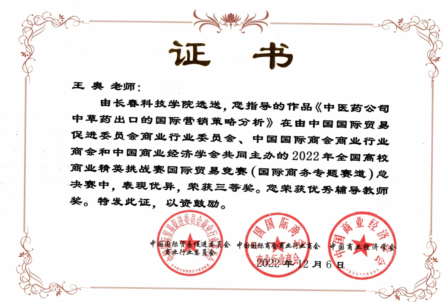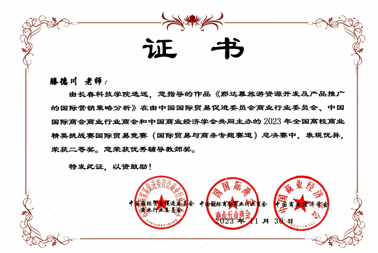 长春科技学院数字经济专业已经形成一支素质高、能力强、交叉学科背景的教学梯队。团队教师15名,副高级以上职称占比85%,中青年教师2名,有经验丰富的博士生、硕士生导师。其中国家级优秀指导教师4人、泰国格勒大学兼职教授、硕士生导师1人,吉林省高层次D类人才3人,E类人才2人,长春市师德标兵称号2人,省级教学名师2人,省级优秀教师2人。师资团队所属学科涵盖统计学、数学与计算科学、经济学、管理学等学科,师资结构形成良好支撑互补。