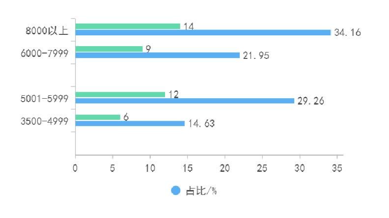 近三年毕业生薪资:3500-4999薪资占比14.63%,5000-5999薪资占比29.26%,6000-7999薪资占比21.95,8000以上薪资占比34.16%,随着技术的提高,薪资提升空间较大。