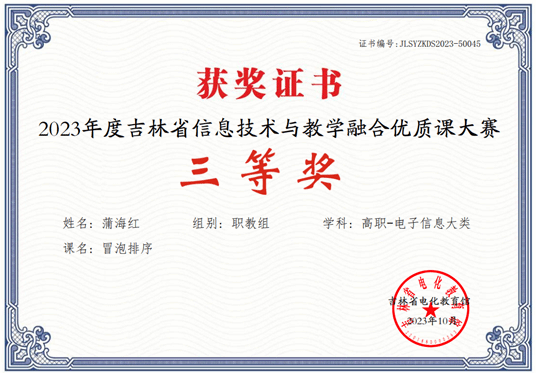近年来本专业学生积极参加各级各类比赛,获奖十余项。其中包括吉林省人工智能创新大赛,荣获二等奖两项;吉林省职业院校技能大赛软件测试赛项三等奖;全国大学生电子设计大赛,二等奖两项、三等奖五项;“互联网+”大赛,荣获吉林省铜奖等。