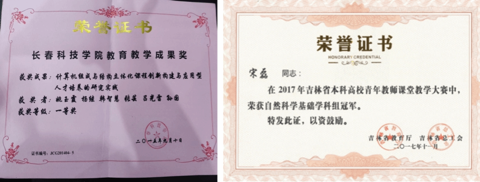 近年来,本专业教学团队获得了许多殊荣:省级优秀团队一个,省级教学名师1人,校级教学名师2人,省级“青年教师讲课”大奖赛冠军1人,多名教师在学校教学比赛中都取得了优异的成绩。