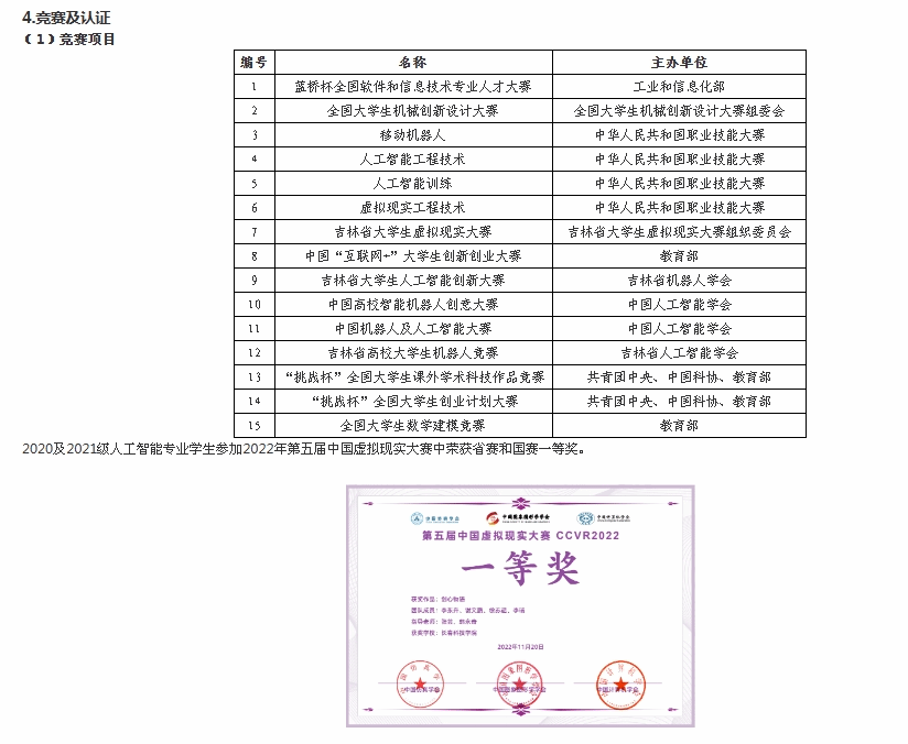 2020及2021级人工智能专业学生参加2022年第五届中国虚拟现实大赛中荣获省赛和国赛一等奖。
