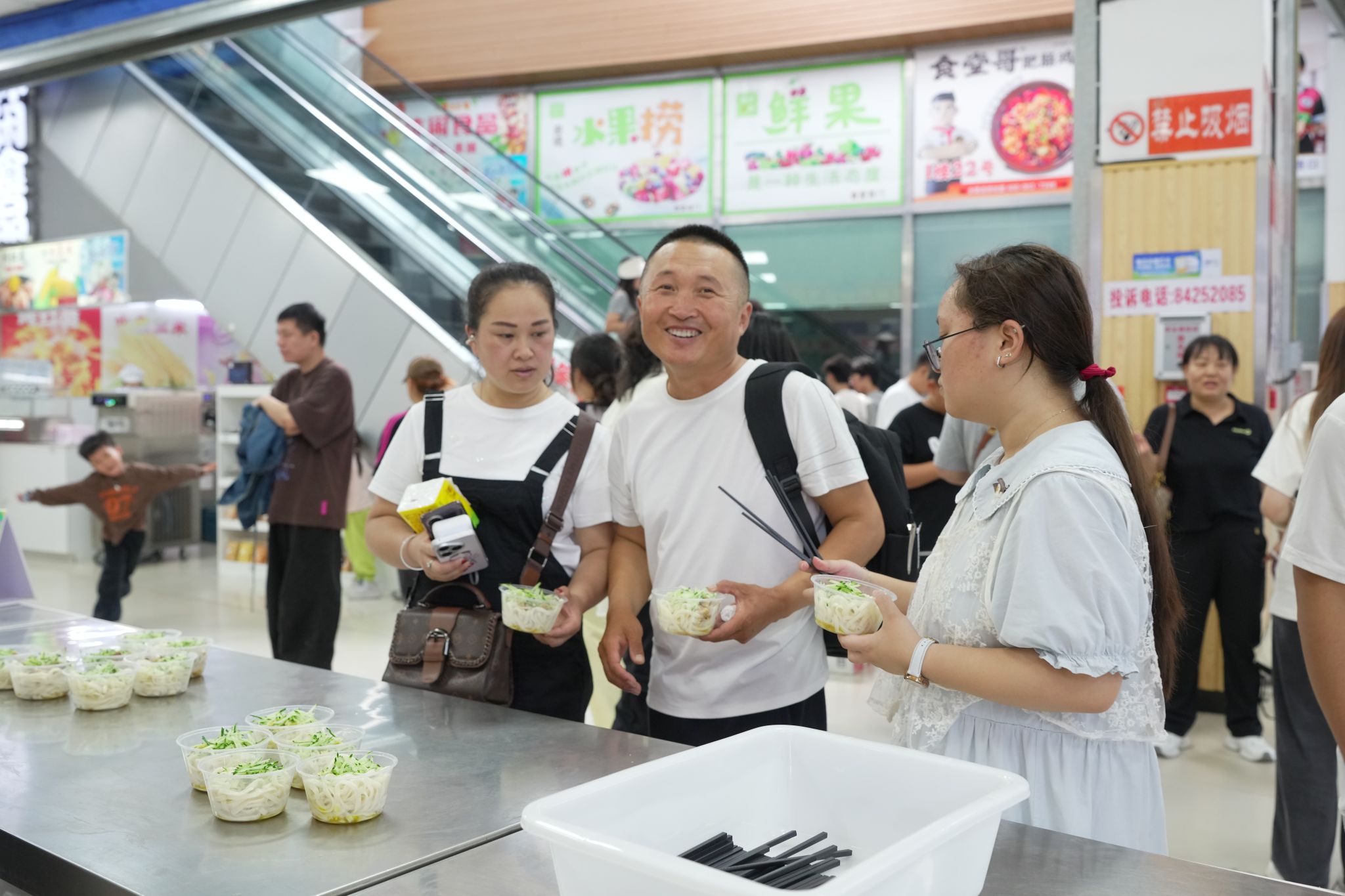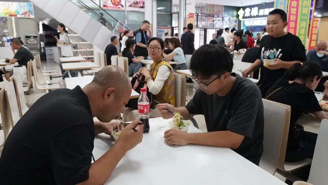 “免费提供打卤面……”食堂经理吴立忠热情的向就餐的新生和家长打着招呼。他表示,为保障活动顺利开展,食堂提前做了周密准备:严格筛选新鲜食材,确保食品安全;开展专项培训,提升员工服务礼仪与现场秩序维护能力;优化场地布置,营造温馨就餐氛围。