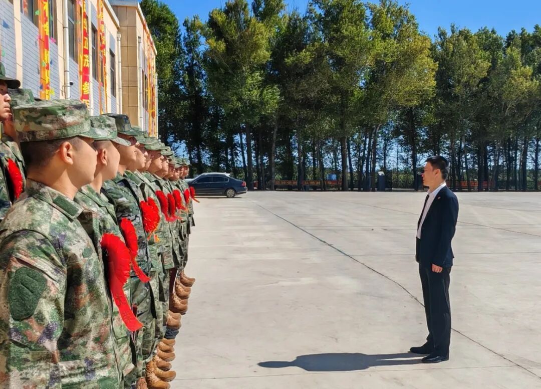 校党委副书记宋学山代表学校为新兵们送上关怀与祝福,亲手为他们佩戴“入伍光荣”大红花,并发放纪念品。学生管理科科长张文、国防教育科科长曾建共同出席活动,为新兵们鼓劲加油。