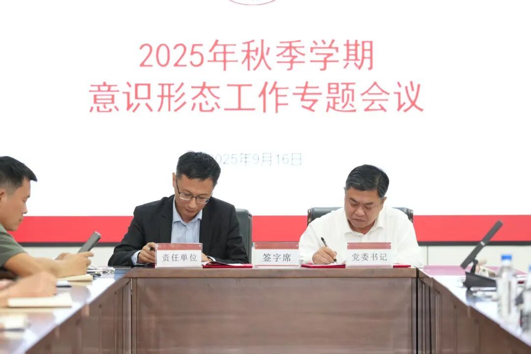 现场还举行了《意识形态工作责任书》签订仪式。各二级党总支书记作为本单位意识形态工作第一责任人,依次上台与崔高嵩书记签订责任书,旨在通过制度化、规范化的管理,确保意识形态工作各项任务落到实处。
