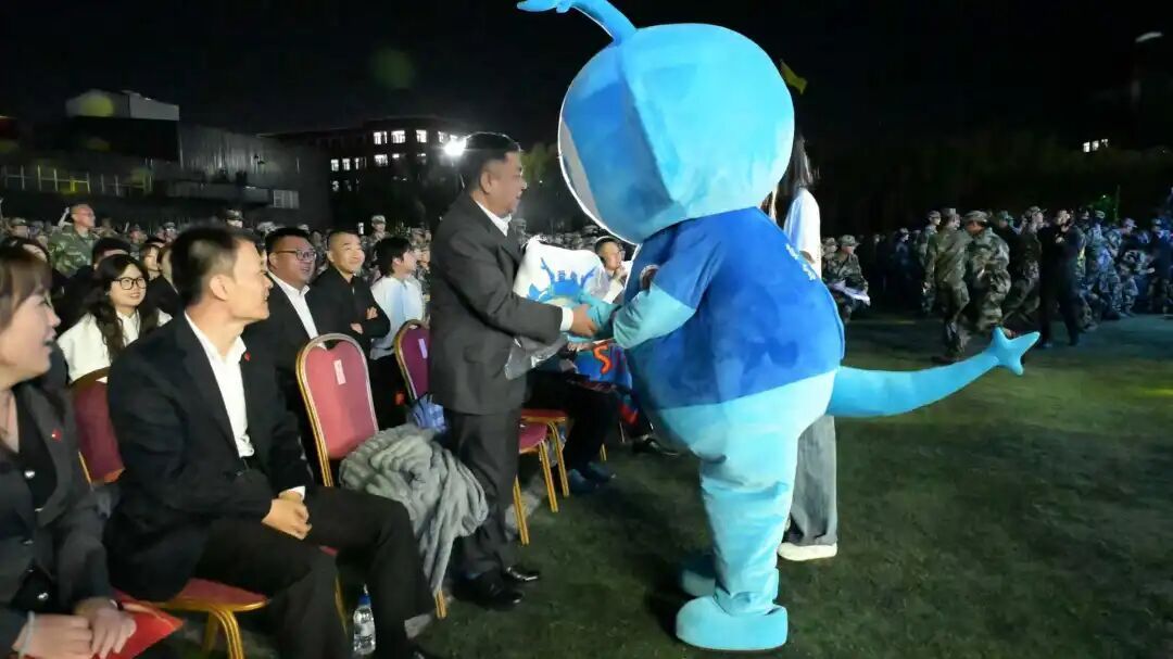 今天的迎新晚会现场来了一位新朋友——鳌宝,它蹦蹦跳跳、笑容满面地朝大家走来,还热情地挥着小手打招呼。紧接着它带来的礼品互动环节热闹开启!现场聚焦所有新生目光,丰厚精美的礼品已备好。随着礼品发送环节推进,每一份礼品都承载着对新生的美好祝愿,让这份惊喜与温暖,为大家的校园初体验增添更多欢乐记忆。
