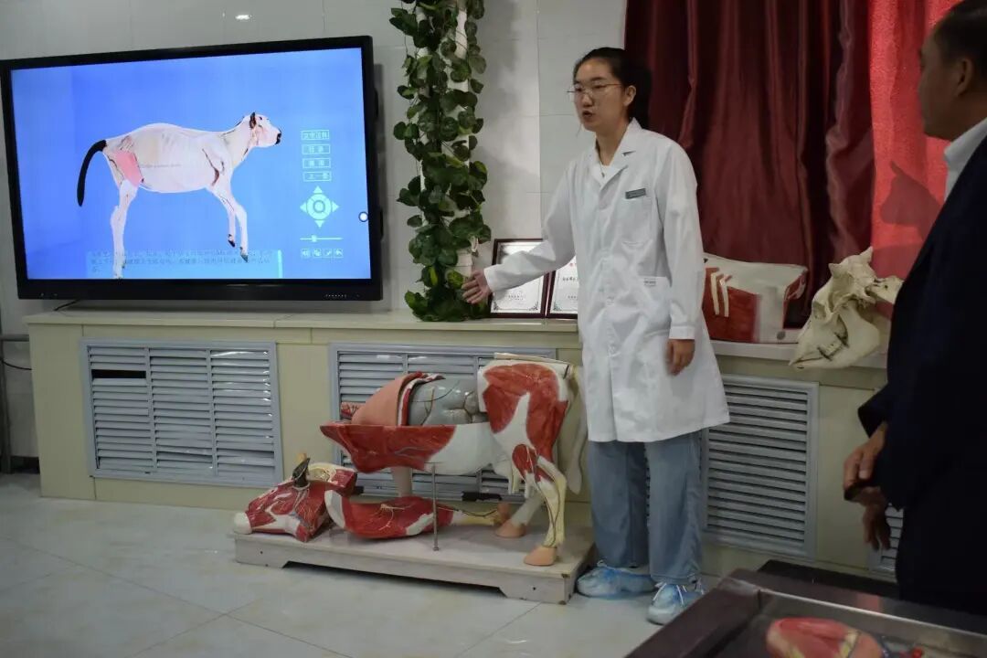 硬件设施凸显专业精度:实验教学中心配备自主研发的3D数字化解剖教学系统,可精准呈现牛、羊、猪、马等常见畜禽的肌肉分层、骨骼结构及器官解剖细节,有效突破传统解剖教学的视觉局限与操作壁垒;同时,陈列的牛全身骨骼标本、定制化肌肉解剖模型等教学资源,为学生构建起直观化、系统化的专业认知场景,支撑实践教学与科研训练需求。