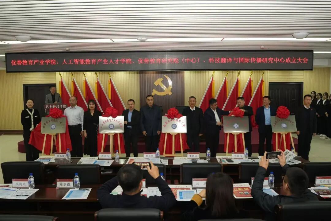 2025年11月20日,学校正式批准设立“三院一中心”,即优势教育产业学院、人工智能教育产业人才学院、优势教育研究院(中心)及科技翻译与国际传播研究中心。该架构以深化产教融合为核心导向,构建了集人才培养、产业服务、科学研究于一体的协同创新平台。标志着学院在产教融合与优势教育方面取得重大突破,为创新“新文科”培养模式、提升人才培养板质量构建了更加充分的平台高地。