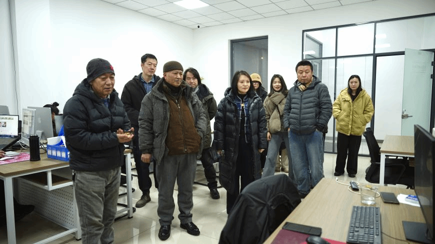 专家们一行首先来到吉林省视觉艺术创新研究中心,走访AI 动画和水墨实验室,刘阳副院长向到访专家介绍了吉林省文科重点基地建设情况,以及两个省级校企合作实验室近期开展的多项工作,观摩了学生在企业教师指导下最新完成的根据长白山民间故事制作的动画短片。专家们对实验室将人工智能技术与传统水墨艺术相融合在“产、学、研”协同发展的创新实践给予高度评价,对学院在艺术科技融合领域的前瞻性布局表示赞同。